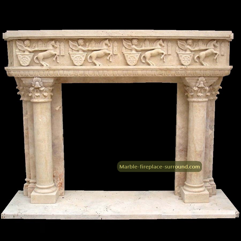 travertine chimneypiece with corinthian columns,If you like this unique marble fireplace surround, welcome to Email us , we will reply you as soon as possible on fireplace surround details and price.