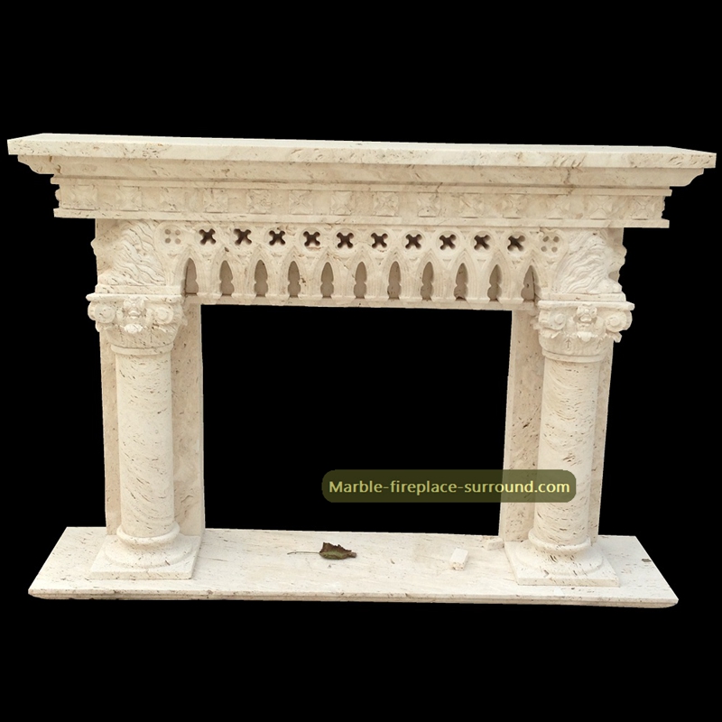 beige marble marble fireplace mantel uk style with double ionic columns carving.Exquiste skilled hand carved work but very good chinese factory price shipping directly to your home!If you like this unique marble fireplace surround, welcome to Email us , we will reply you as soon as possible on fireplace surround details and price.