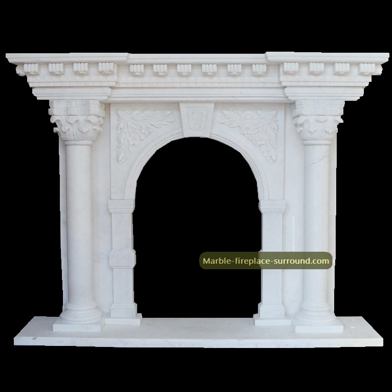 White Marble Corinthian Column Fireplace surrounds with arched opening italian design marble fireplace mantel,Exquiste skilled hand carved work but very good chinese factory price shipping directly to your home!