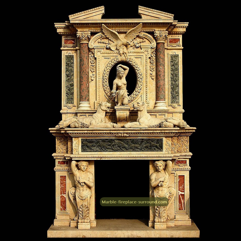 large custom fireplace mantels and surrounds Hawk statues marble over mantel,The second photo of this hawk sculpture double mantels is showed how we work on it in our factory in China, All of this amazing white marble over mantel is came from our engaver's hand carved. The photo shows the first tier (top tier)we have just finished , you could see the vividly carving leopard statues and eagle sculpture, all the custom fireplace mantel is exquiste hand carved.