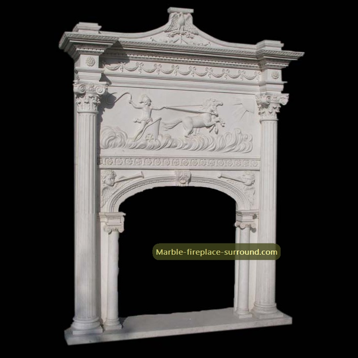 Home>Designer Chimneypiece> white marble overmantel carriage relief